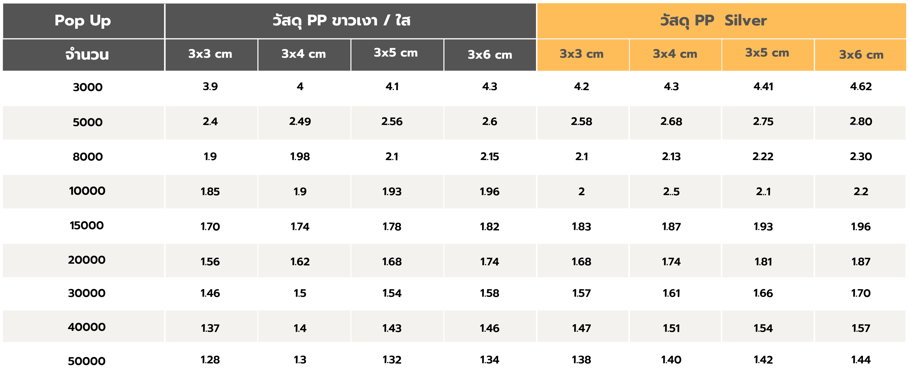 ราคาสติ๊กเกอร์ป๊อบอัพ Pop Up