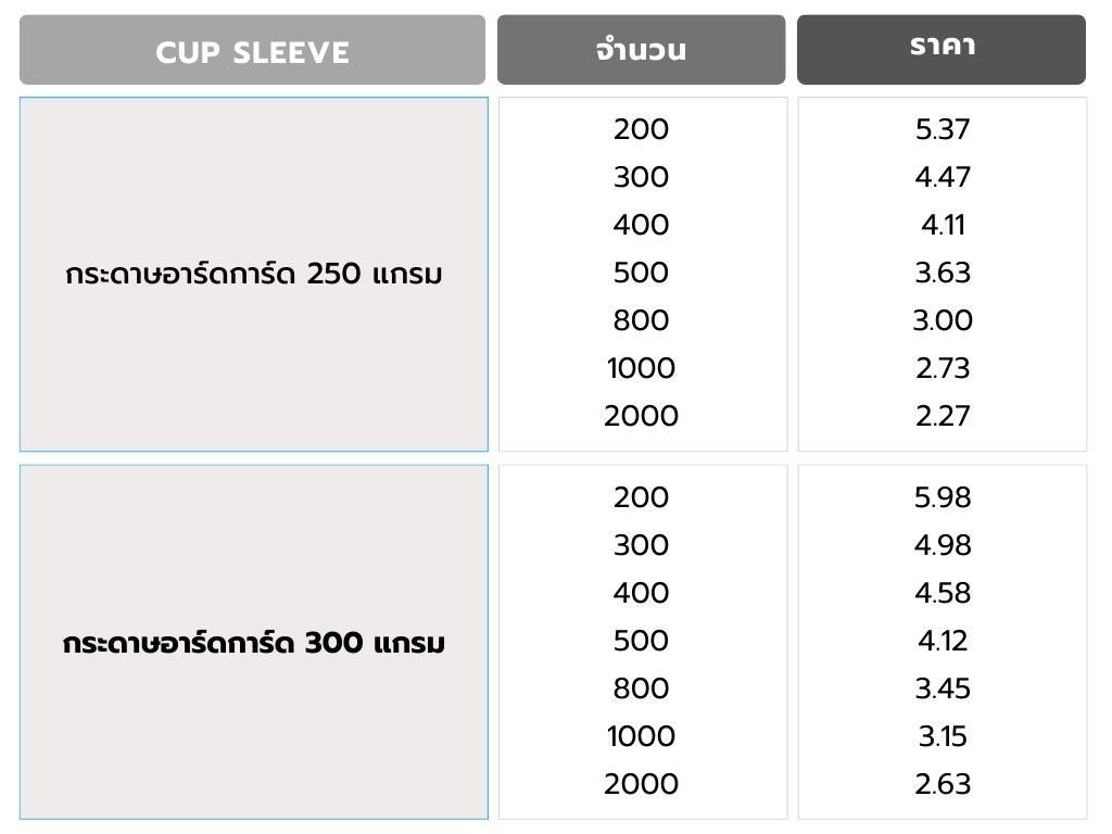 ตารางราคาสายคาดแก้ว ,ปลอกสวมแก้วกาแฟ