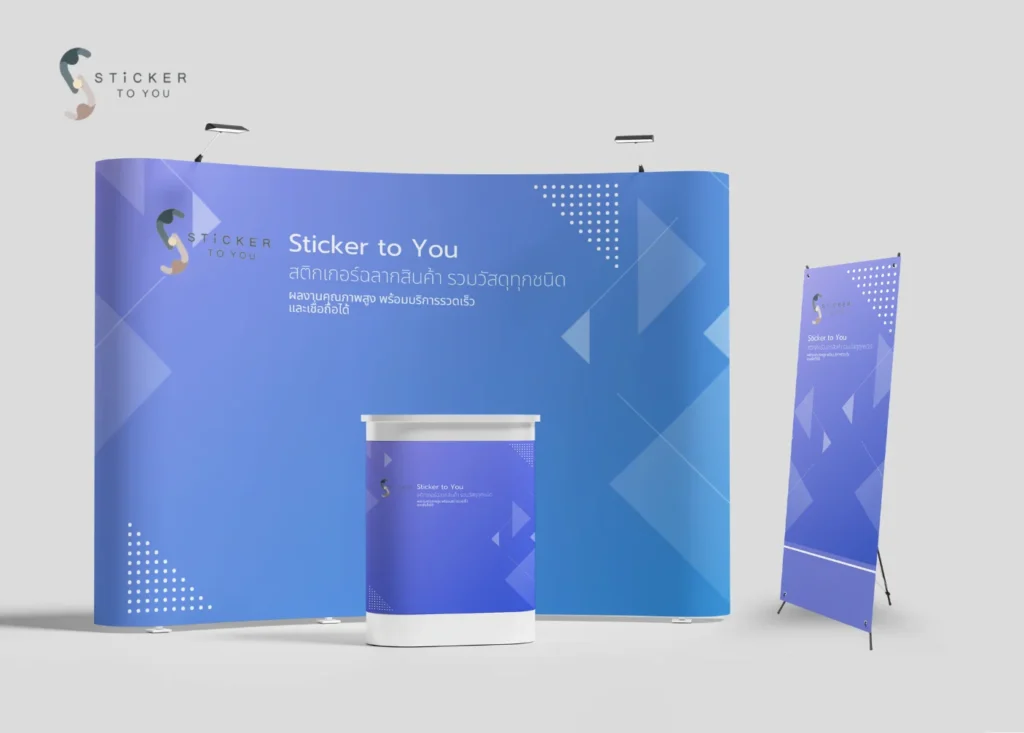 Sticker to You เรามีประสบการณ์ยาวนานในการออกแบบและผลิตอุปกรณ์ออกบูธ เพื่อตอบทุกโจทย์ของธุรกิจ ด้วยบริการที่ครบวงจรตั้งแต่การออกแบบบูธให้ตรงกับความต้องการ การพิมพ์ป้าย สติ๊กเกอร์คุณภาพสูง ไปจนถึงการจัดหาอุปกรณ์ตกแต่งบูธแบบครบชุด เรามีทีมงานมืออาชีพที่พร้อมให้ข้อมูลและคำแนะนำเพื่อให้บูธของคุณออกมาสวยงาม น่าสนใจ และคุ้มค่าแน่นอน